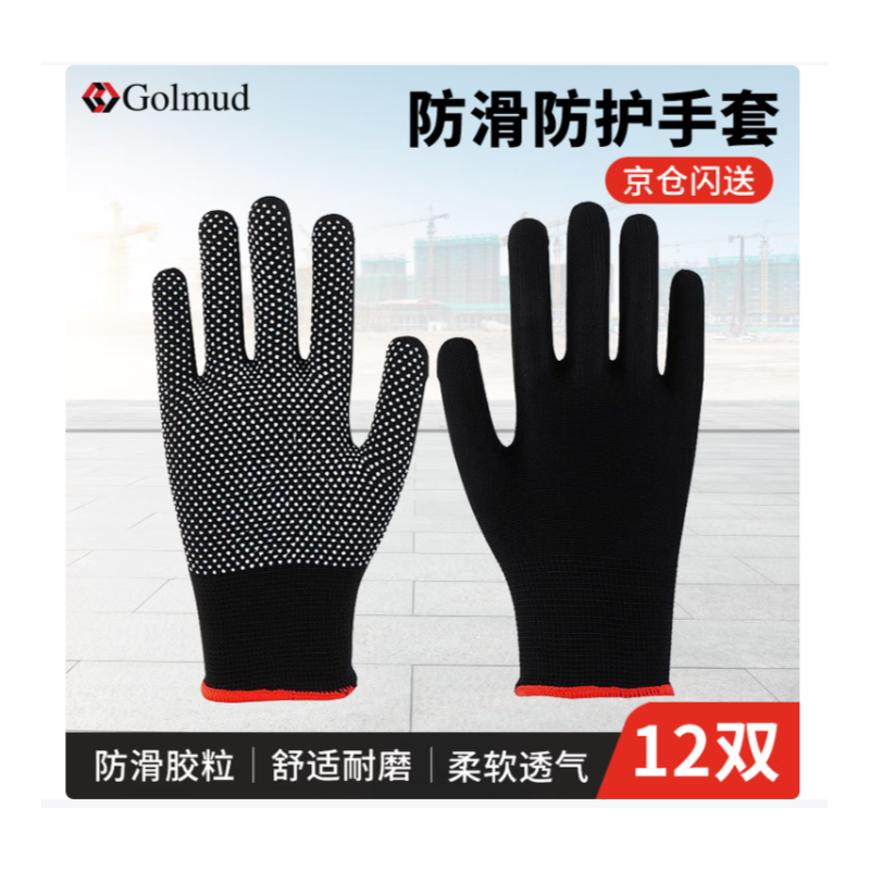 哥尔姆 ST530 点塑手套 黑色红边