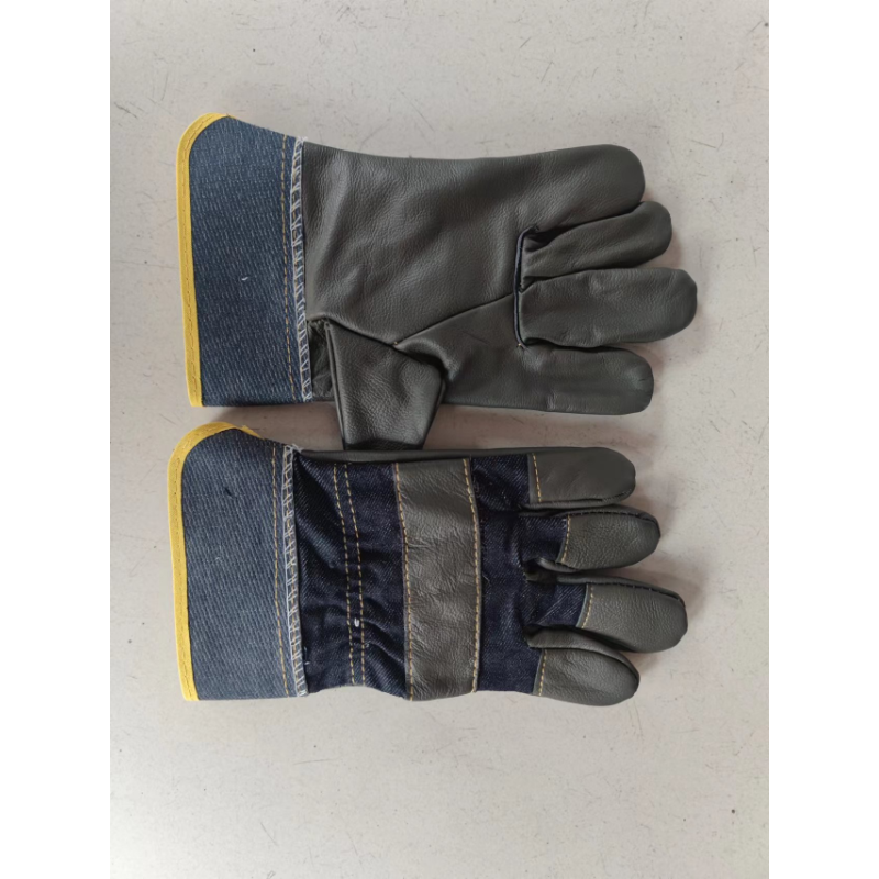百劳汇 半皮手套 电焊手套 牛仔布分掌手套 深色
