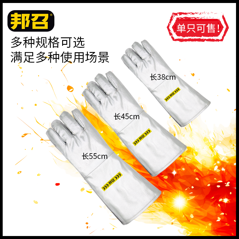 邦召 9611920 铝箔隔热手套 防辐射热1000℃耐高温500℃隔热手套