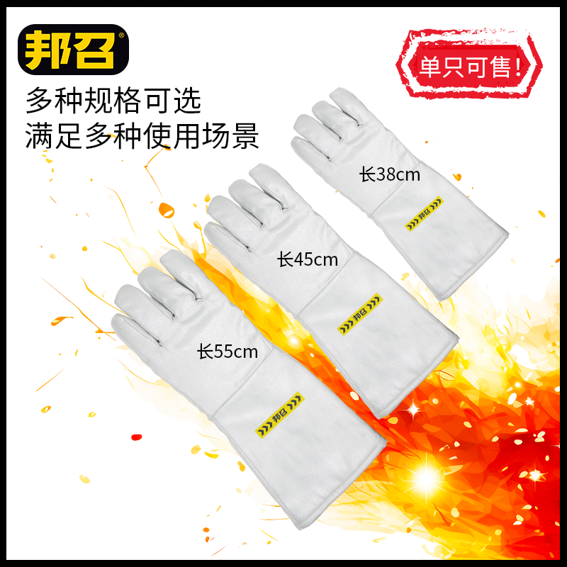 邦召 9611931 耐高温隔热手套 耐高温500℃并指两指凯夫拉隔热手套