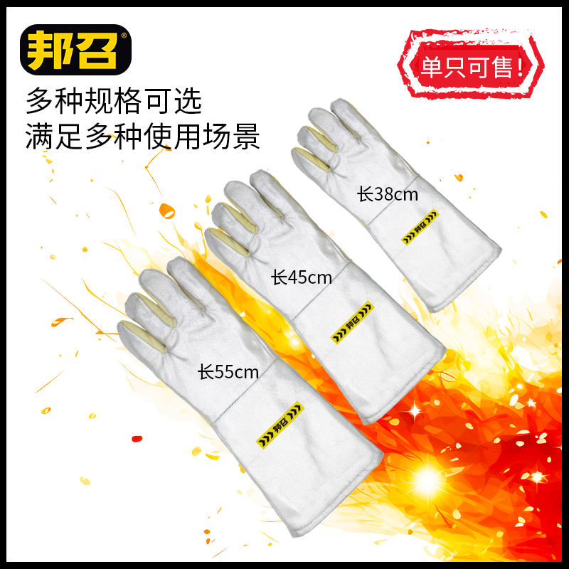 邦召 9611987 耐高温隔热手套 耐高温500℃-800℃凯夫拉加强耐磨隔热手套