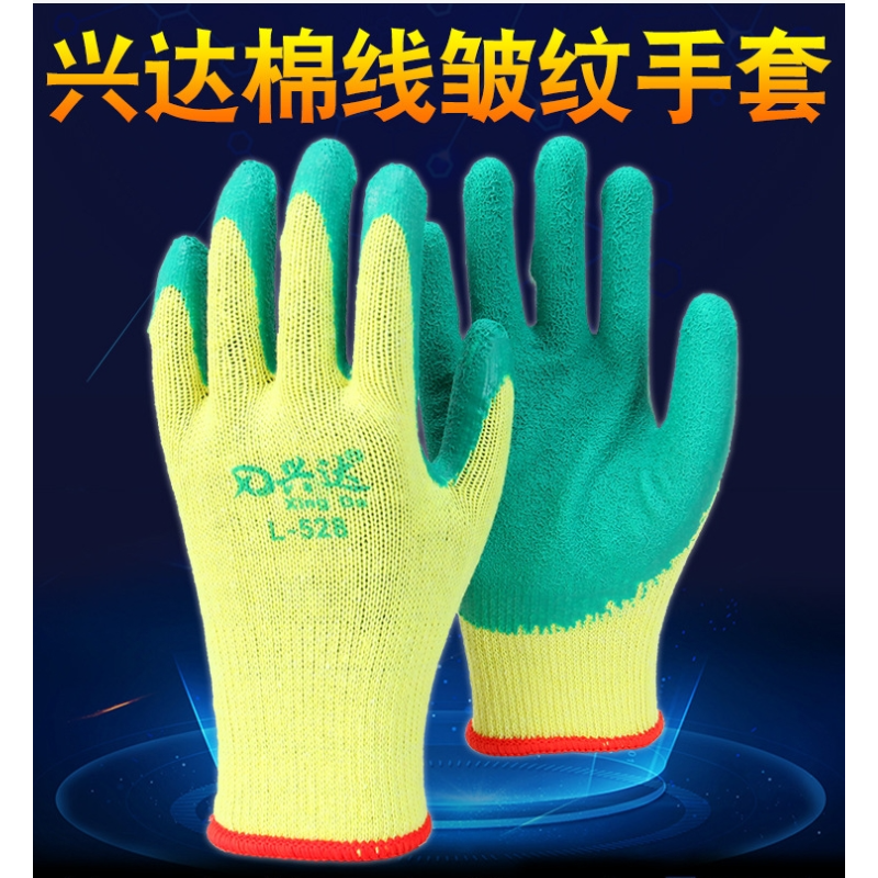兴达 兴达 L528 纱线皱纹手套 黄纱绿胶