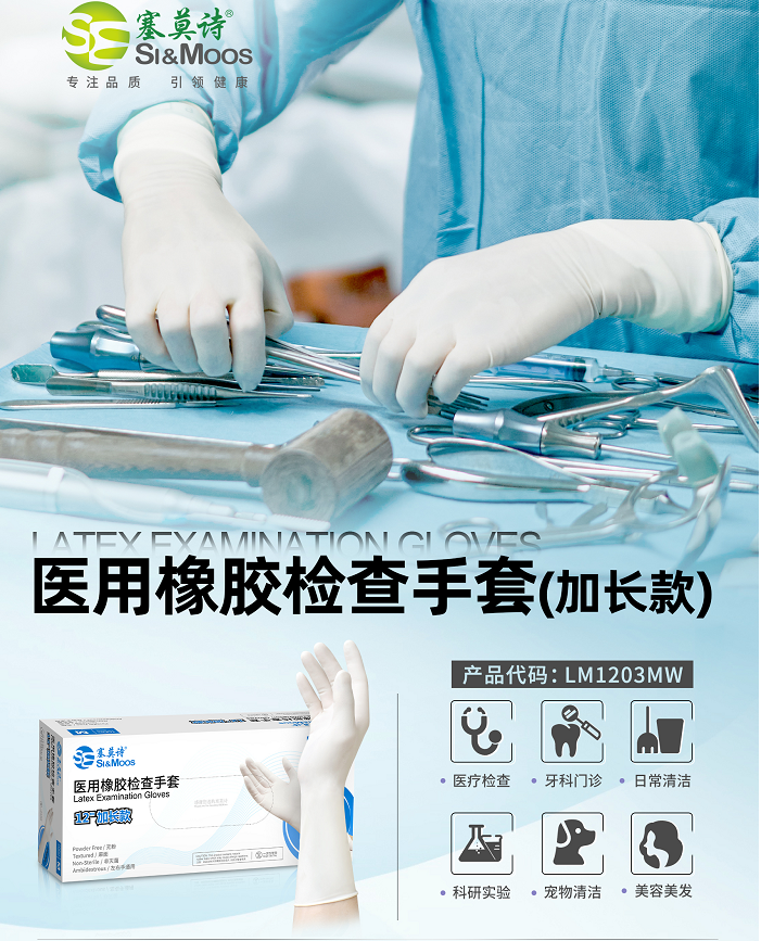 塞莫诗 LM1203MW 民用橡胶检查手套(加长款)