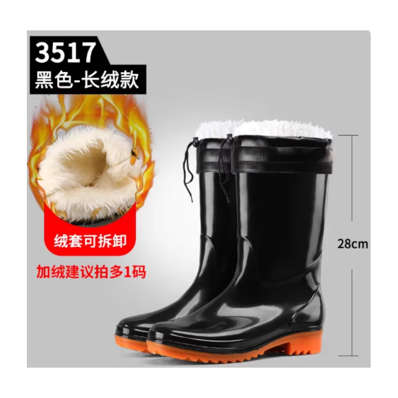 双星 中筒雨鞋 加绒雨鞋 加棉一体半筒雨鞋 劳保雨靴秋冬季保暖胶鞋