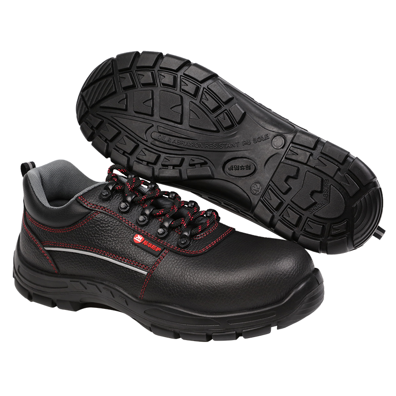 颜色:黑色 鞋帮款式:低帮 鞋舌:封闭 鞋扣类型:D型扣 保护足趾:是 防刺穿:是 绝缘:是 1.6mm高柔软度牛皮材质 高密度网面 鞋底材质:橡胶PU注塑鞋底 包头材质:玻璃纤维 凯夫拉 防砸(保护足趾)|防刺穿|绝缘|防滑