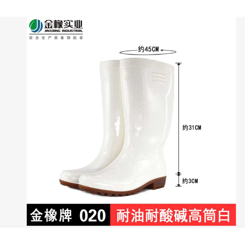 金橡 020 食品接触用PVC食品靴 高筒 耐油耐酸碱 白色