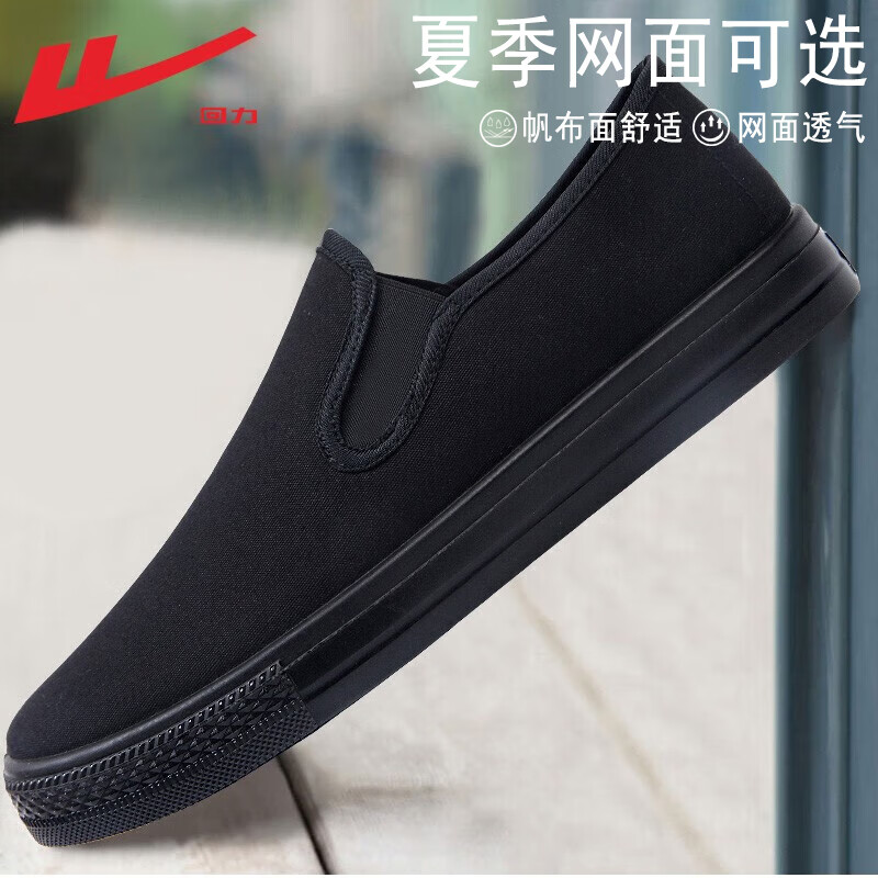 回力 A328X 甲板鞋经典款帆布鞋-黑红