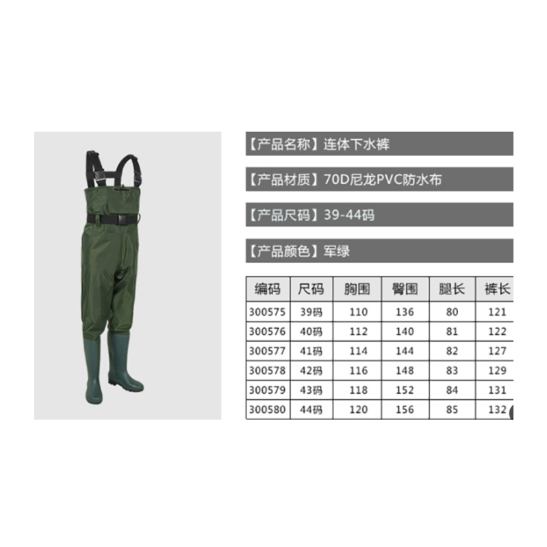 安赛瑞 300575 半身连体下水裤 军绿