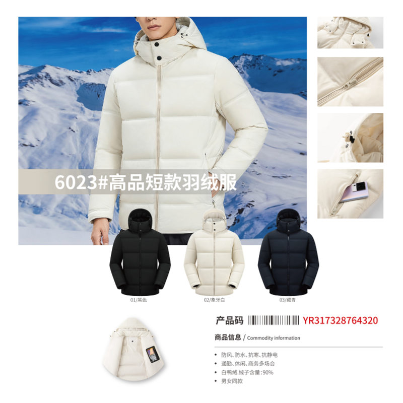 百劳汇 9528 短款羽绒服 含90的白鸭绒 黑色