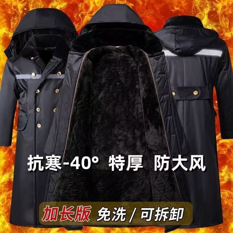国产 冬季新款 保暖反光条棉衣中长款运动风劳保防寒耐磨棉大衣