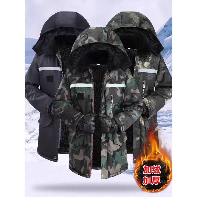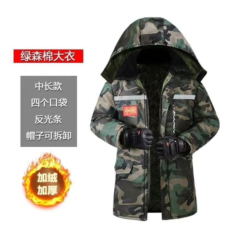 昌廷 迷彩保暖大衣 带反光条 中长款