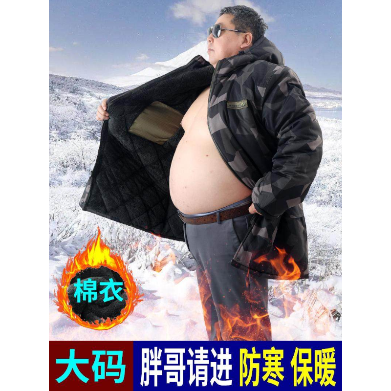 百劳汇 大码迷彩棉衣男 冬季加厚加肥加大防寒冷库防风棉服中长款军棉大衣