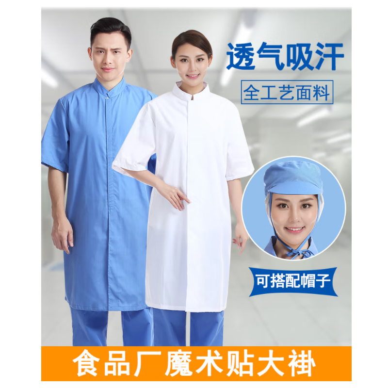 百劳汇 立领无兜 魔术贴 全工艺涤棉白大褂 松紧袖口