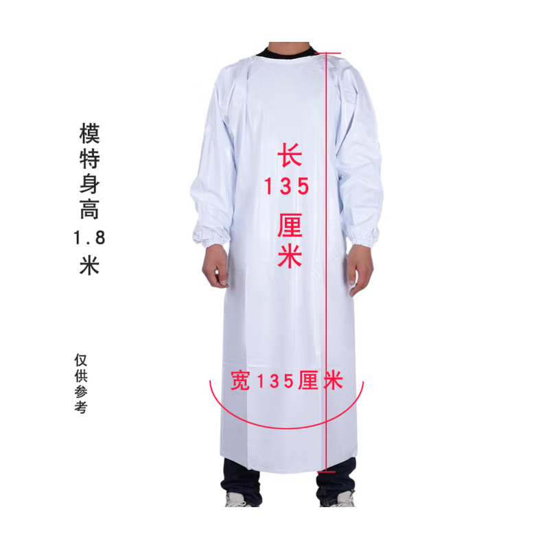 雄雪美 PVC白色防水防油长袖围 反穿衣 16丝罩衣 135乘135CM