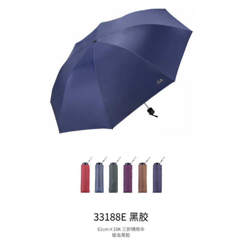天堂 33188E 黑胶三折晴雨伞61cm*10骨