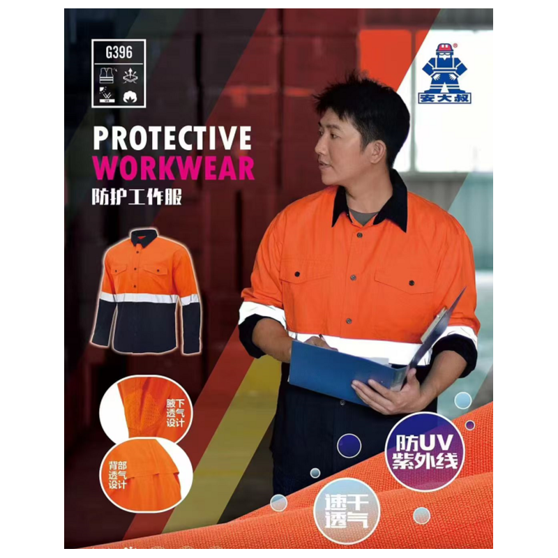 安大叔 G396 春秋工作服带反光条 涤纶 上装 纽扣 桔红色拼深蓝色