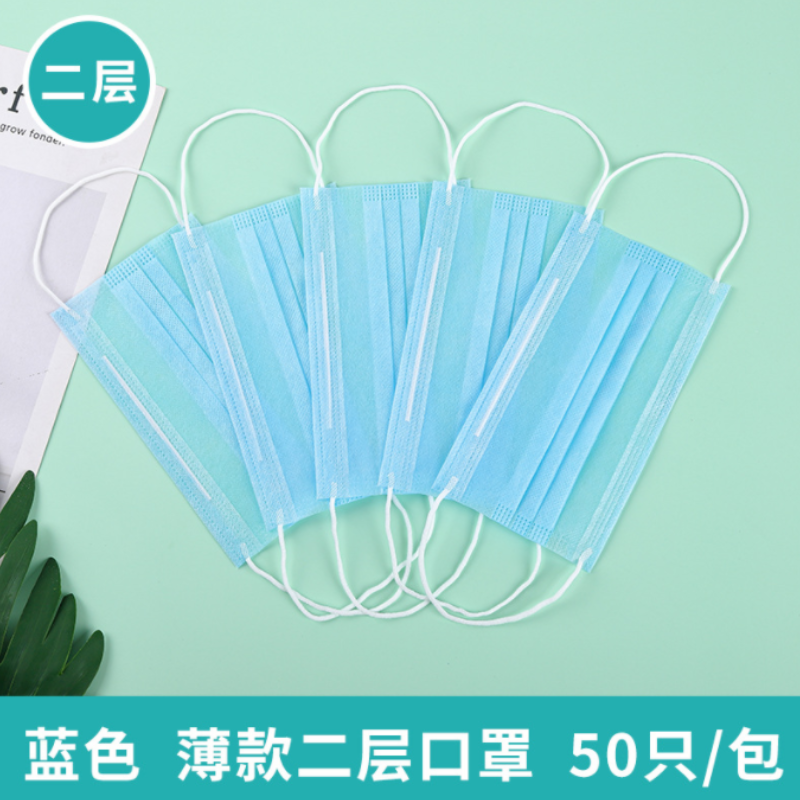 优安 一次性平面口罩 双层 蓝色(50只/袋)