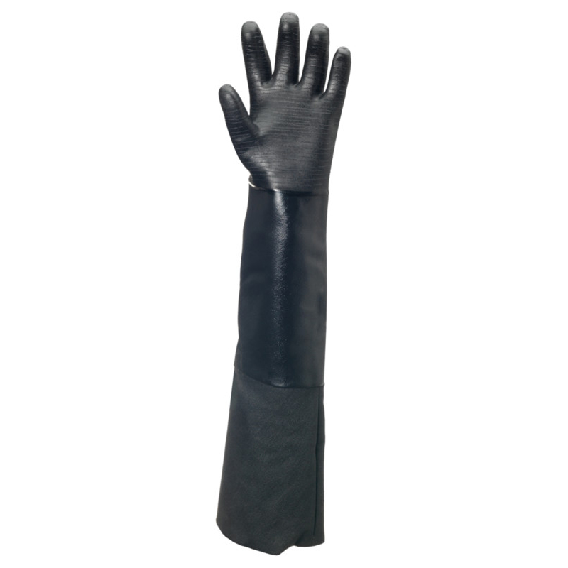 尺寸:8 式样:全涂层 双层隔热衬里 涂层材料:氯丁橡胶 袖口:直筒袖口 颜色:黑色 45cm 耐磨等级:3级 防割等级:2级 耐撕裂等级:2级 防刺穿等级:2级 间歇接触高达180℃高温表面 是否有粉:否 防静电:是 是 是 粗糙表面掌纹 防化|防静电 EN388|EN374|EN407|EN511|EN1149