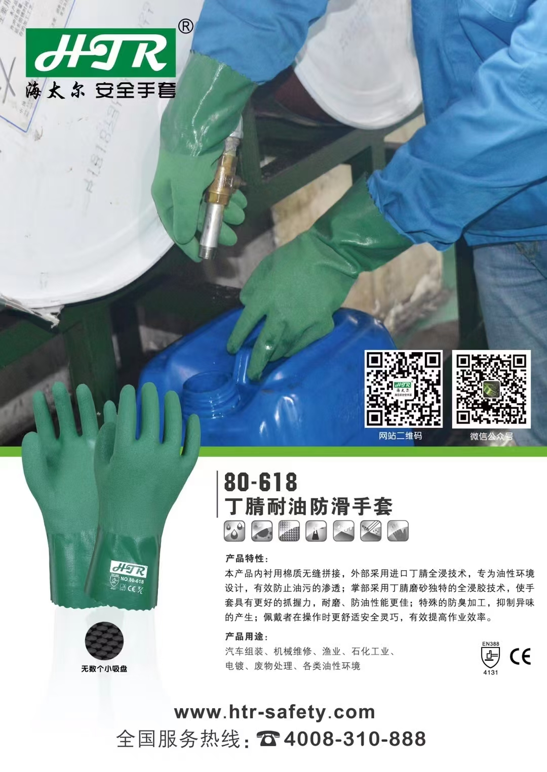 海太尔 80-618 绿色丁腈耐油手套