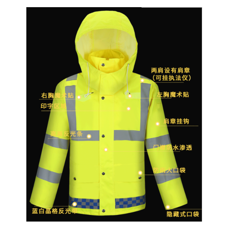 君御 N211-3A上衣 带反光条雨衣执勤雨衣荧光黄单件上衣