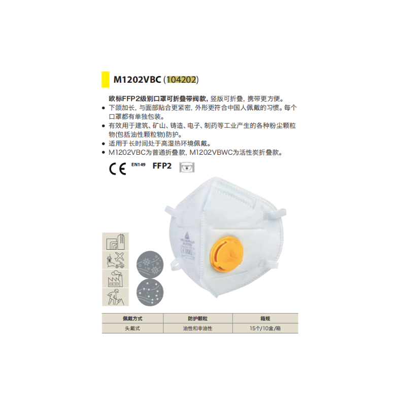 代尔塔 104202 竖折P2带阀口罩15只装M1202VBC