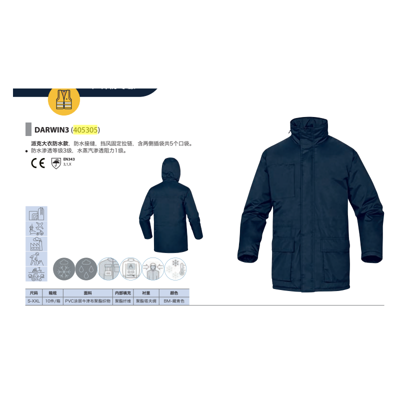 代尔塔 405305 DARWIN3派克大衣防水款