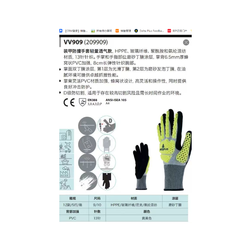 代尔塔 209909 VV909蜂窝装甲手套