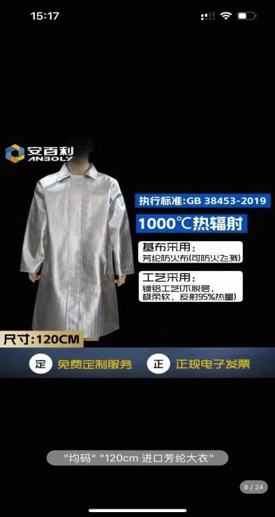 安百利 ABL-J02 芳纶镀铝反穿衣全包 120CM