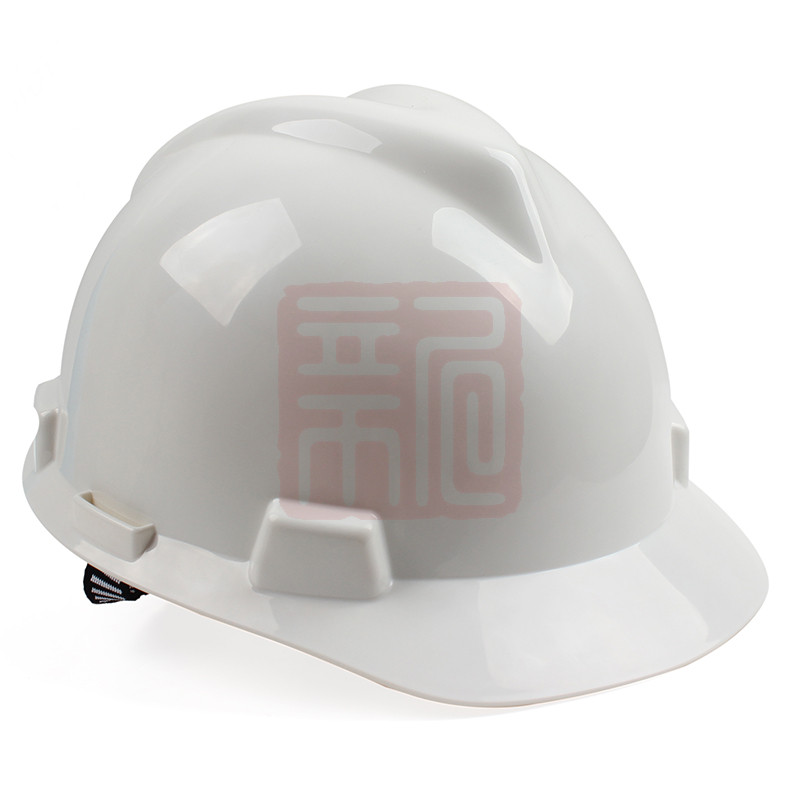 帽壳材质:ABS 下颏带:E型 帽衬:一指键 颜色:白色 帽壳外形:V型 供应配件:帽衬 吸汗带:针织布 透气孔:无 两侧插槽:有 电绝缘:是 防静电:否 苏州 国标GB 2811-2019