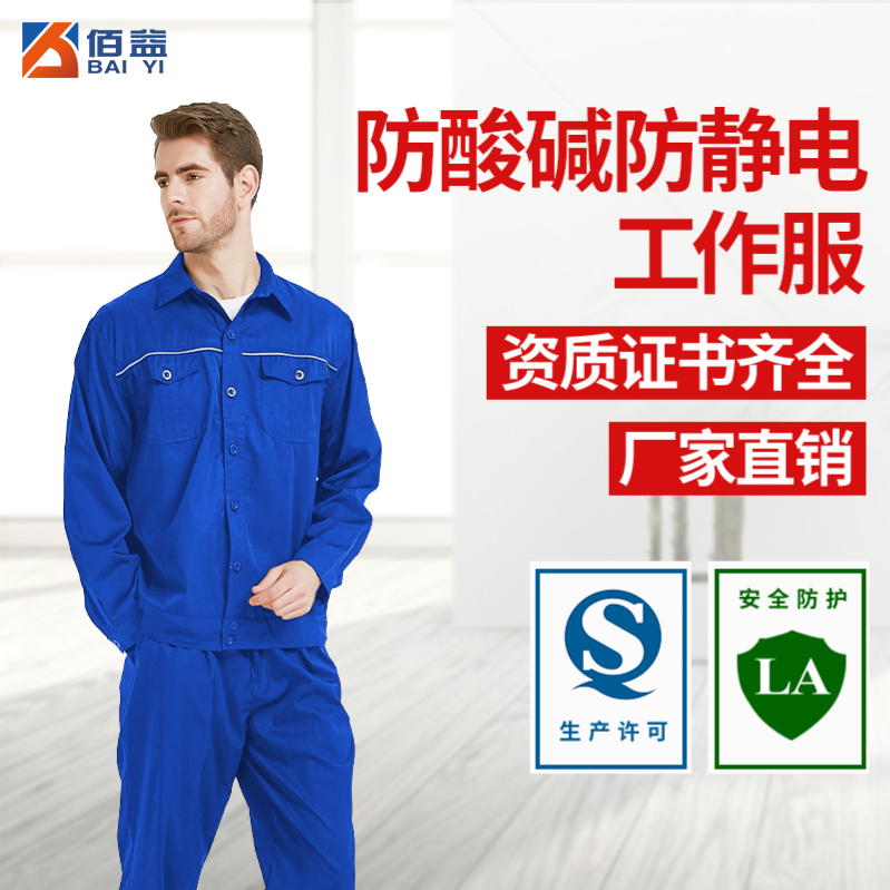 佰益 6007 夏季防酸碱工作服艳蓝色