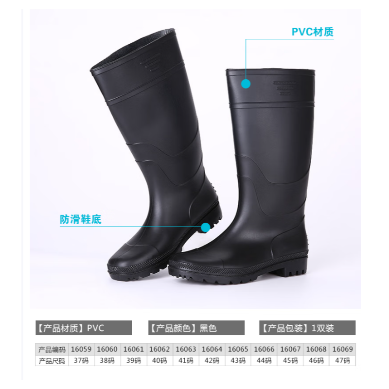 安赛瑞 16069 高筒PVC塑胶雨鞋