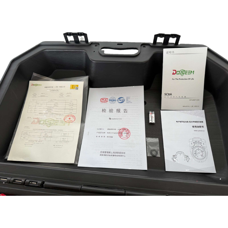 是否带他救援:是 报警哨:前置 胸部压力表是否带夜光:是 气瓶瓶表:无 中压管类型:三通 气瓶材质:碳纤维气瓶 气瓶容积:6.8L 5.5±0.5MPA 30MPA