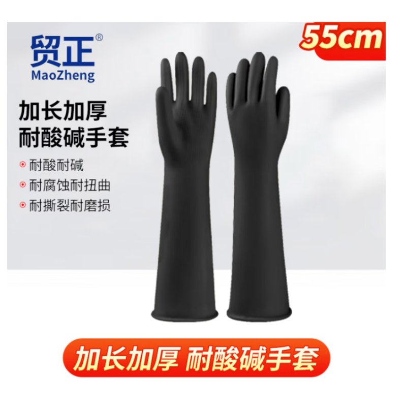 贸正 MZGY-55黑 加长加厚工业乳胶耐酸碱手套 55cm