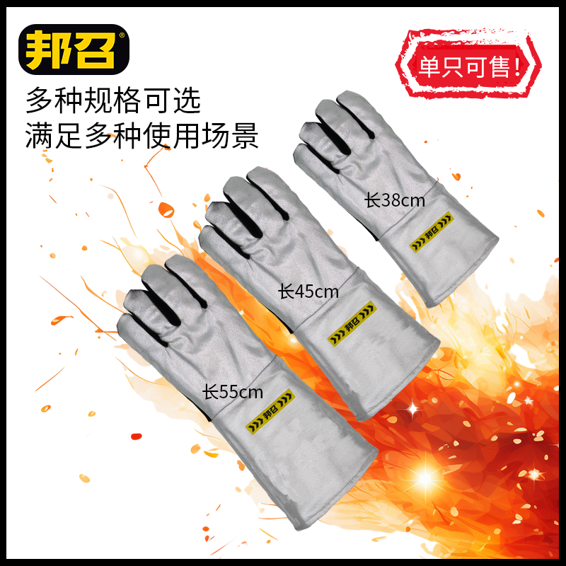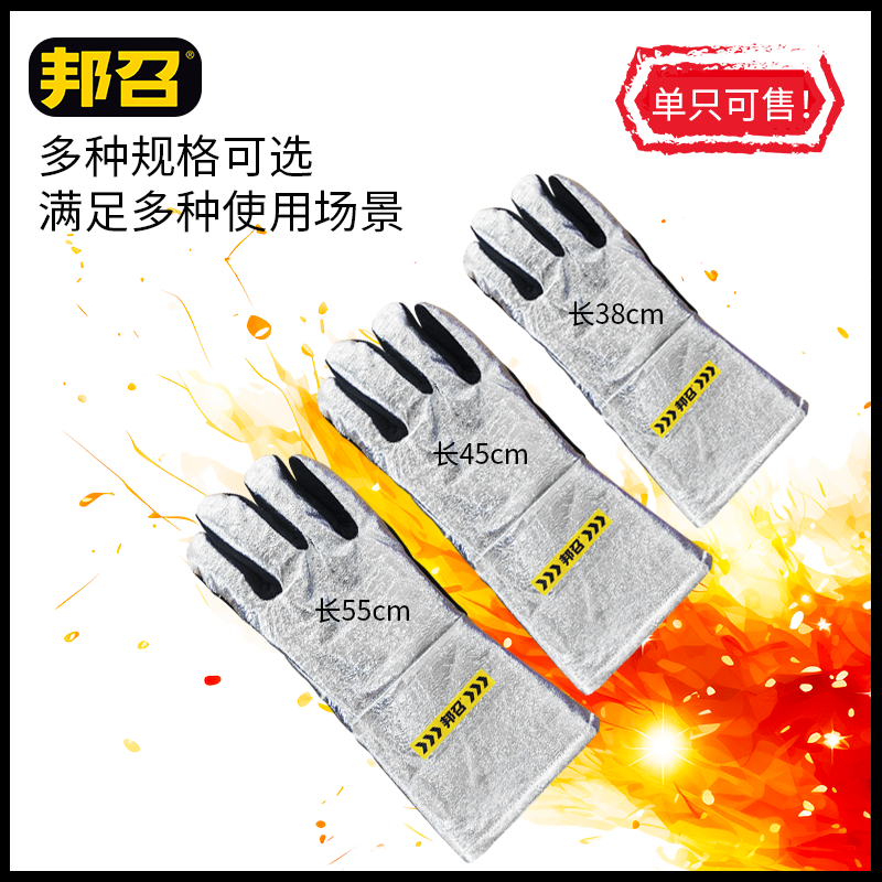 邦召 9611913 铝箔隔热手套 防辐射热1000℃铝箔牛皮耐高温300℃隔热手套