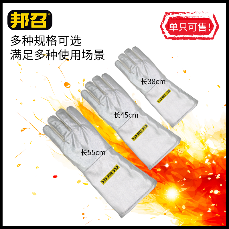邦召 9611923 铝箔隔热手套 防辐射热1000℃耐高温500℃隔热手套