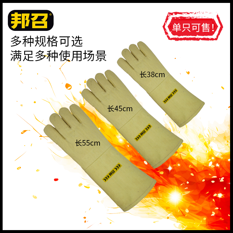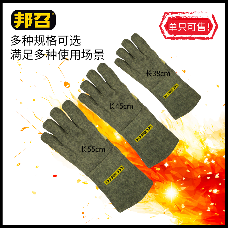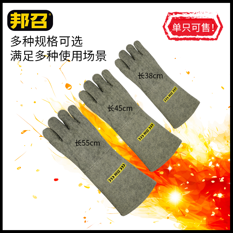 邦召 9611987 耐高温隔热手套 耐高温500℃-800℃凯夫拉加强耐磨隔热手套