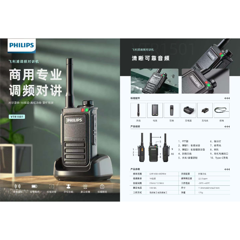 飞利浦 VTR1501 调频对讲机