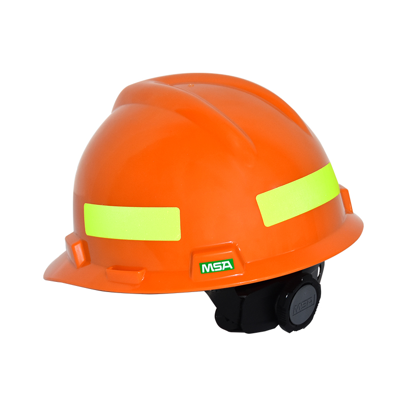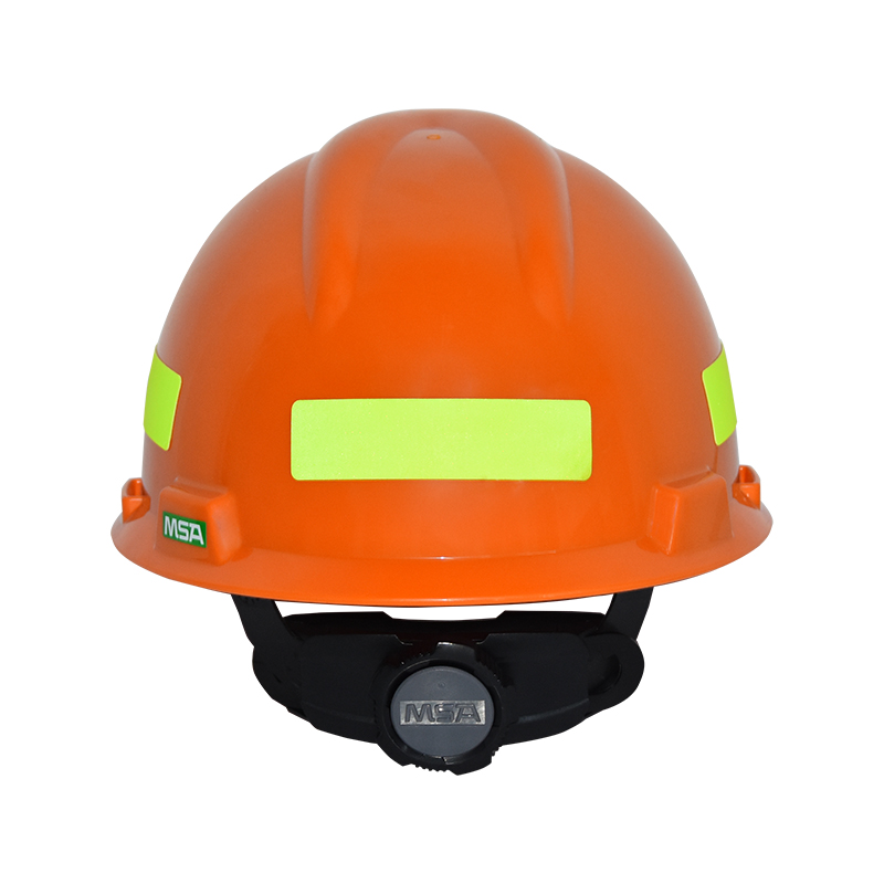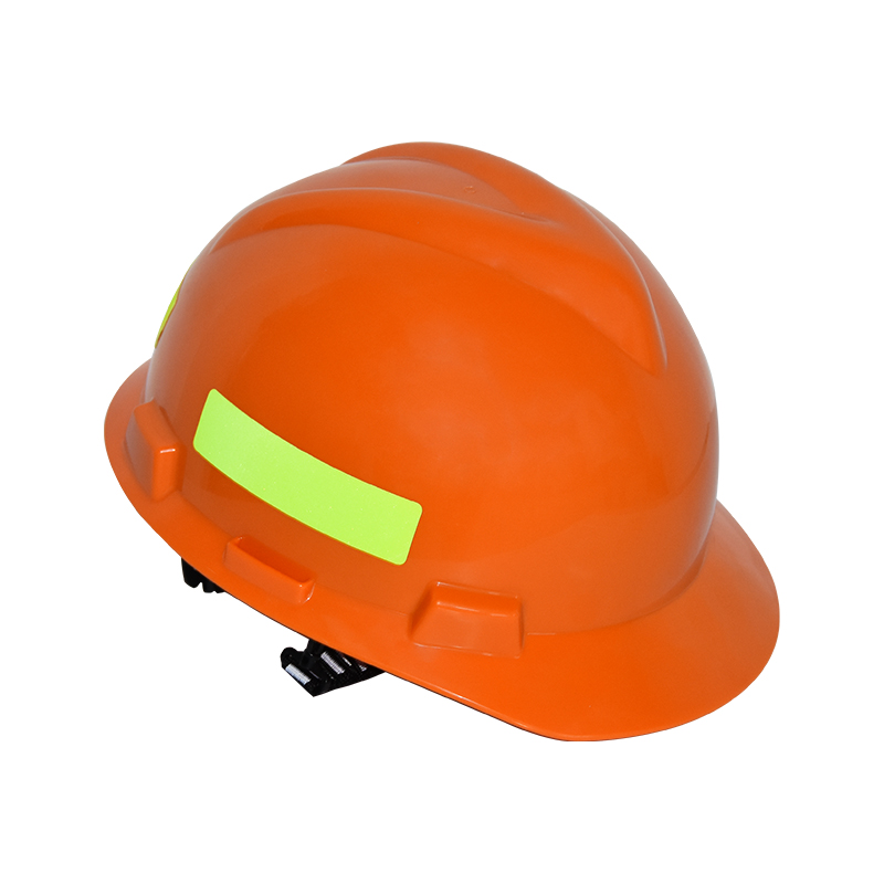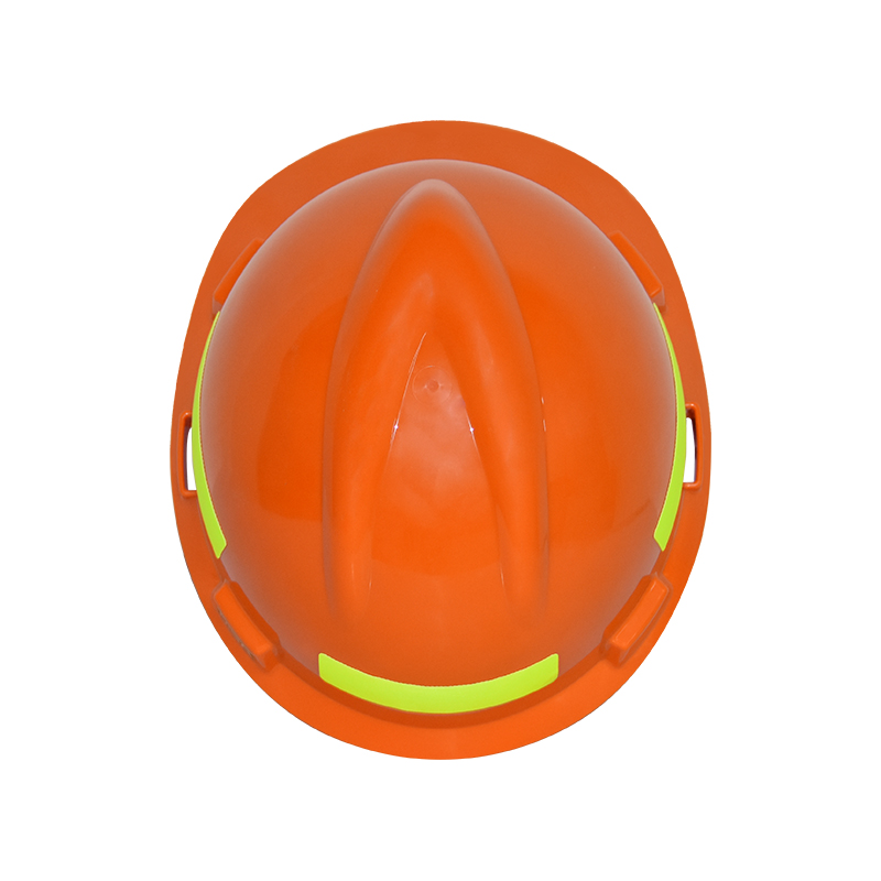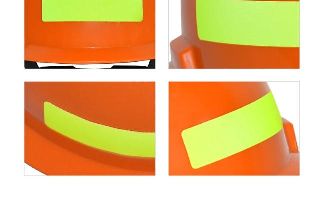 3条阻燃荧光黄反光条,贴于安全帽后面1条,左右侧面各一条。
