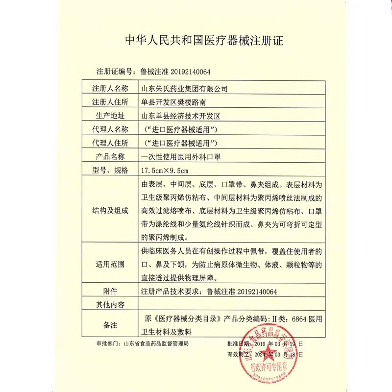 东贝一次性医用外科口罩;