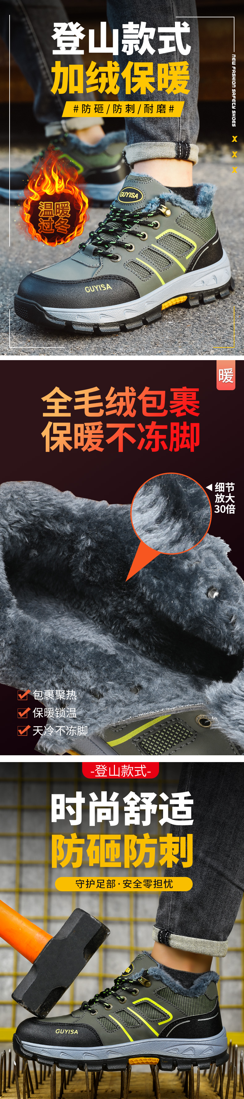 加绒鞋垫,舒适保暖;