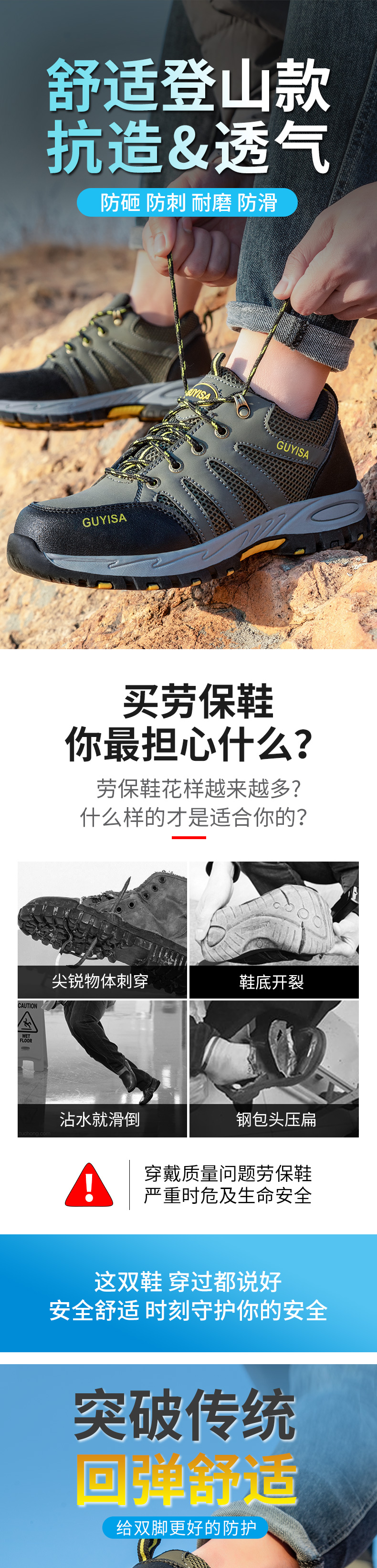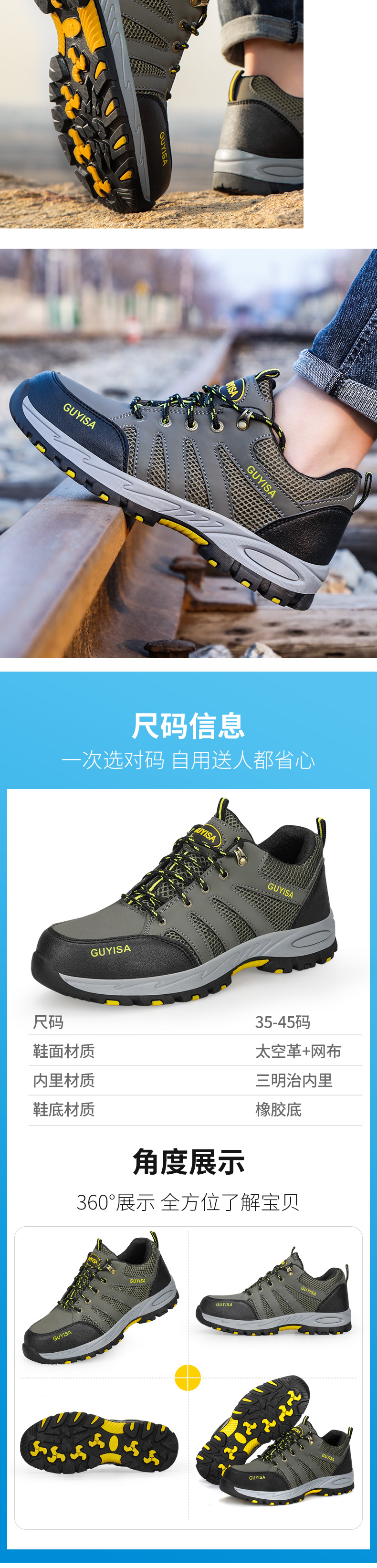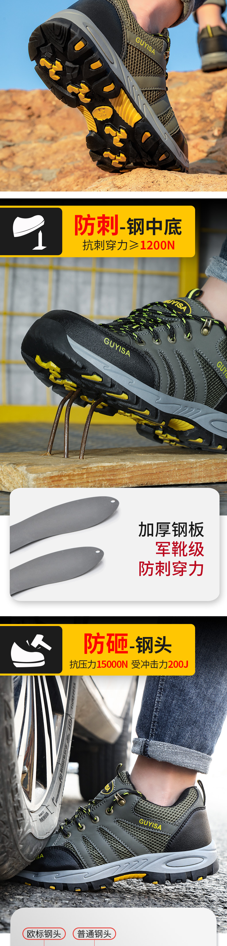 钢中底防刺穿,防砸钢头;