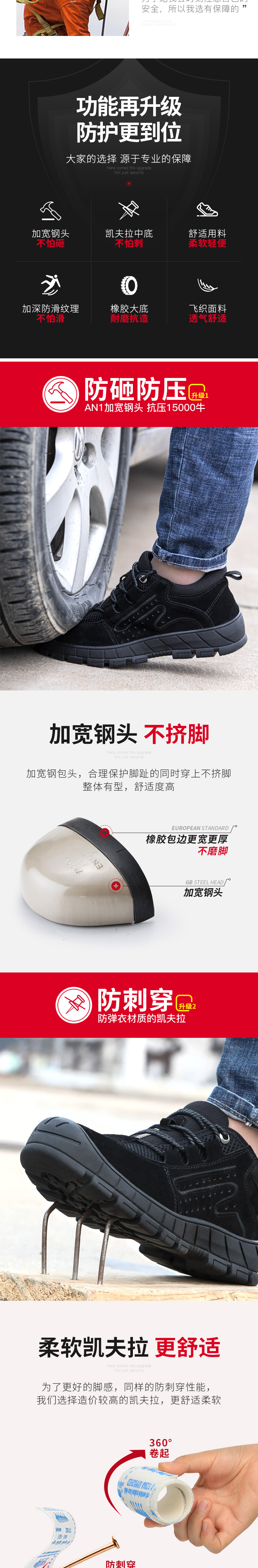 加宽钢头,不怕砸,凯夫拉中底,不怕刺;