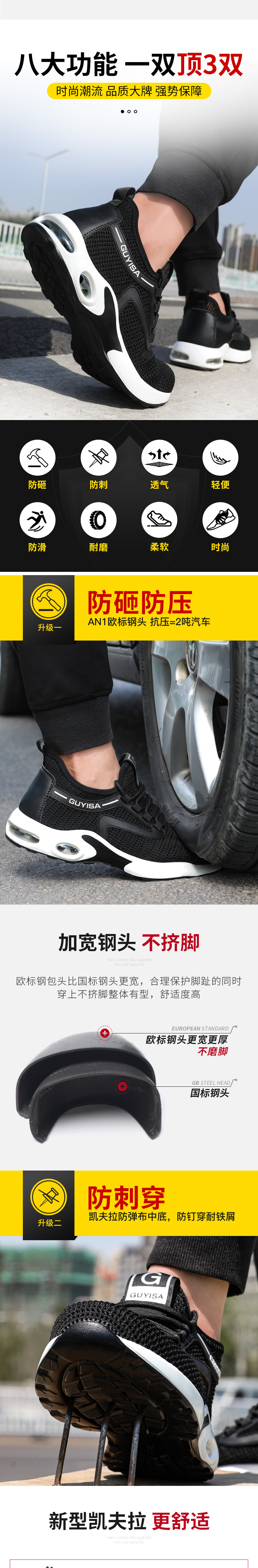 欧标钢头,防砸防压,凯夫拉中底,不怕穿刺;