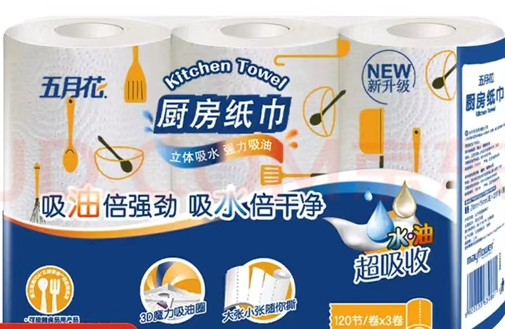 • 商品名称:五月花 厨房纸巾 超吸收120节/卷x3卷