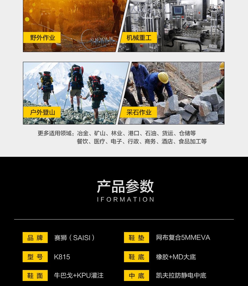 赛狮 K815防刺穿防静电防滑中帮安全鞋;