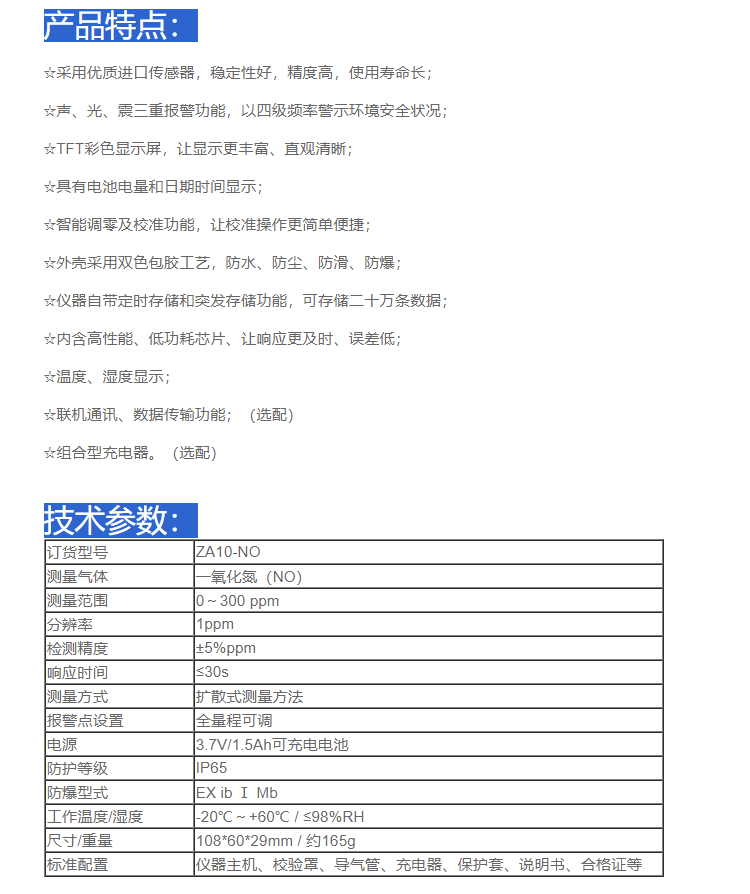 卓安 ZA10-NO便携式气体检测仪(一氧化氮);