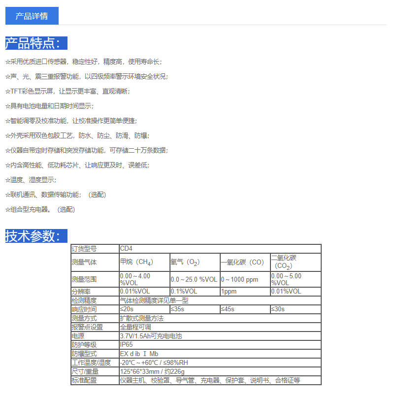 卓安 CD4便携式四合一气体检测仪(甲烷/氧气/一氧化碳/二氧化碳);