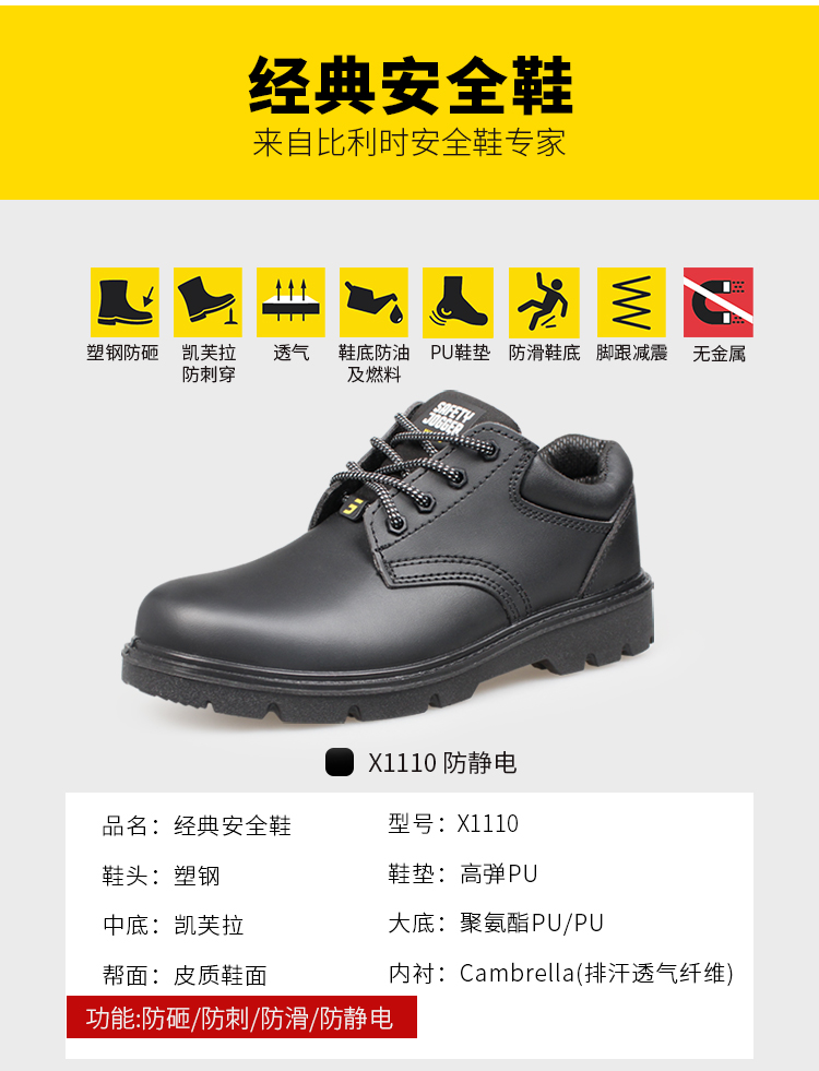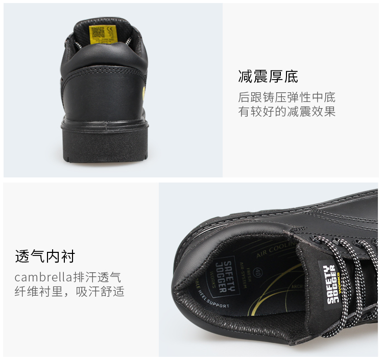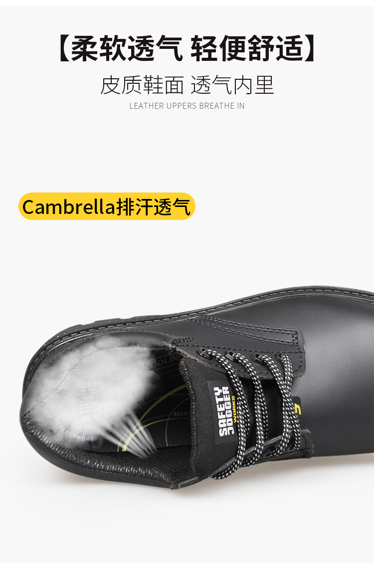 ●非金属复合材料防砸包头保护足趾,凯芙拉防刺穿中底,减轻重量增加柔软度;