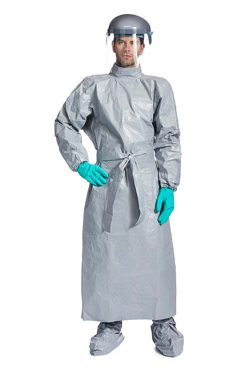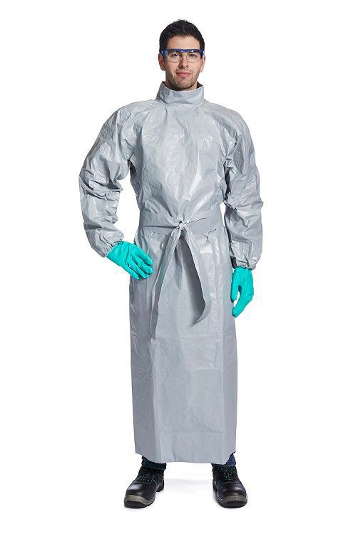 •Tychem® 配件(围裙、罩袍、靴套和套袖)有助于对较多暴露于危害物下的身体部位加强防护; •Tychem® 6000 F防护服及配件的面料为一种质轻、耐用的面料,具有优良的防多种化学品渗透的性能,有助于防止多种有毒工业有机化学品、高浓度无机化学品(即使是在受压条件下)、颗粒、生物危险品和某些化学战剂对人类的危害; •杜邦™ Tychem® 6000 F 型号0290,为后背闭合的长衫式反穿衣,为身体前部提供防护 •弹性袖口,双层袖口设计,长度覆盖至小腿 •缝合并带胶条面料防护等级相同 •Tychem® 6000 F适用于化学品溢出清理、应急响应、军事和石油化工等多种应用。 |