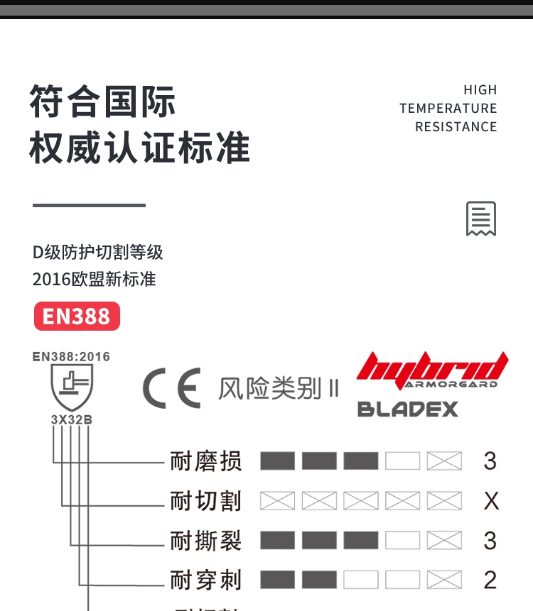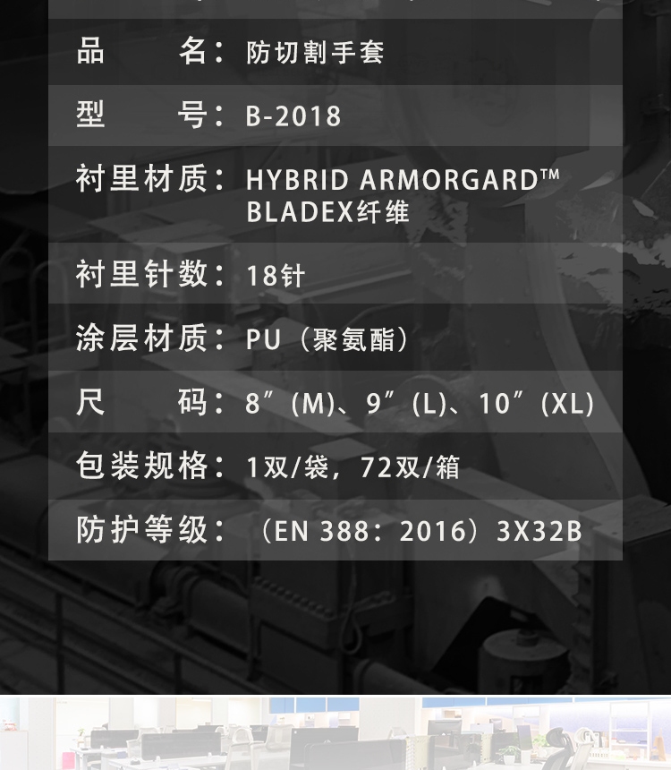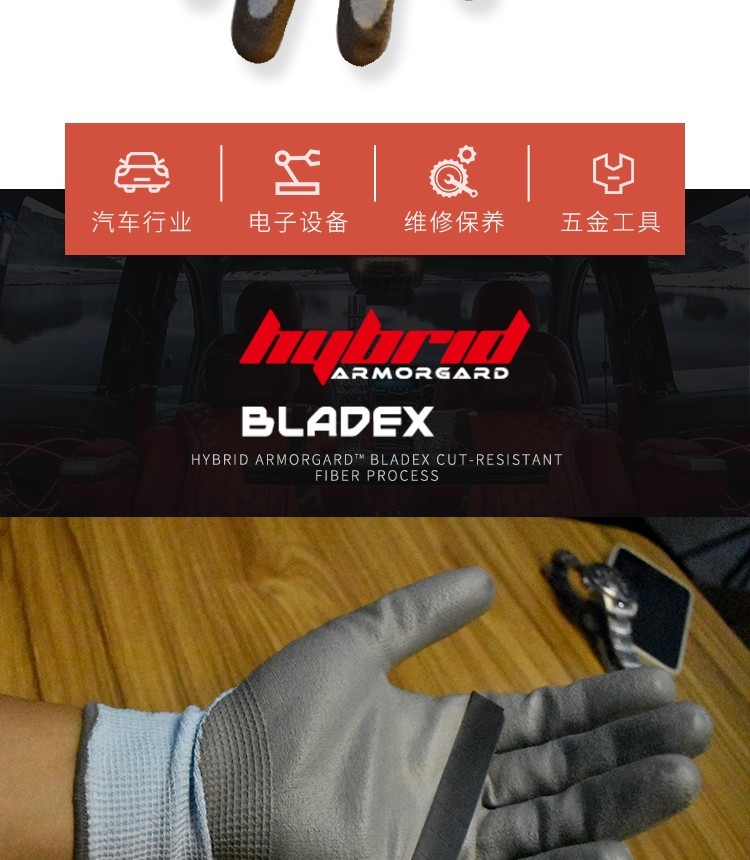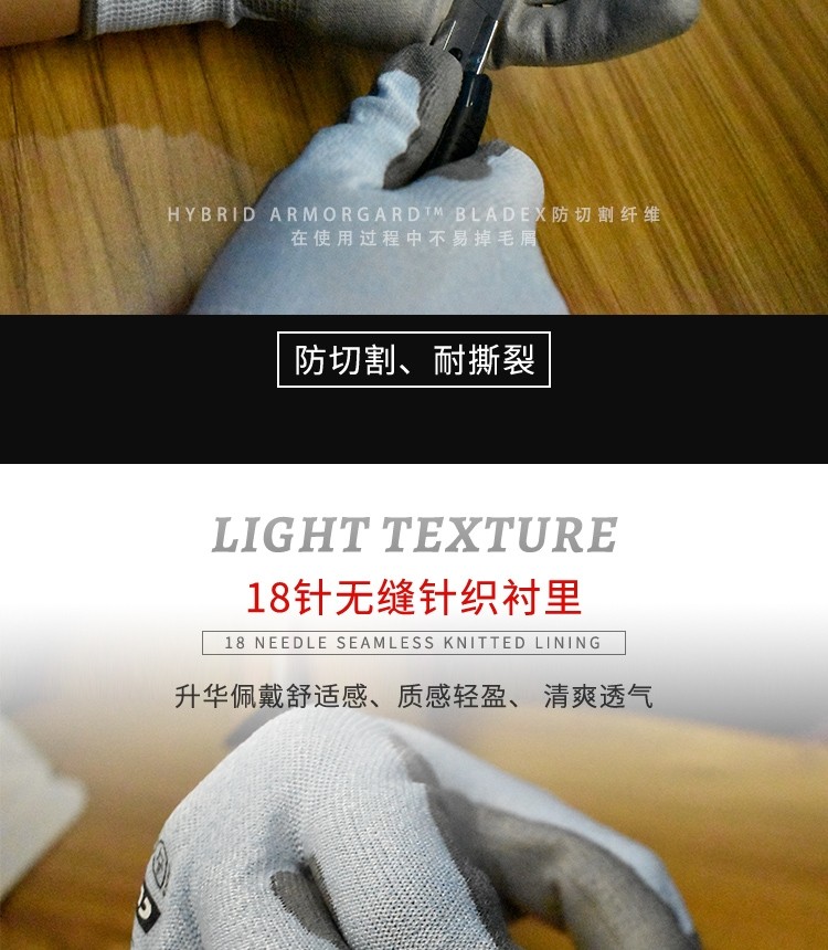 新型Hybrid Armorgard™ BladeX防切割纤维材质保护手部减少损伤;